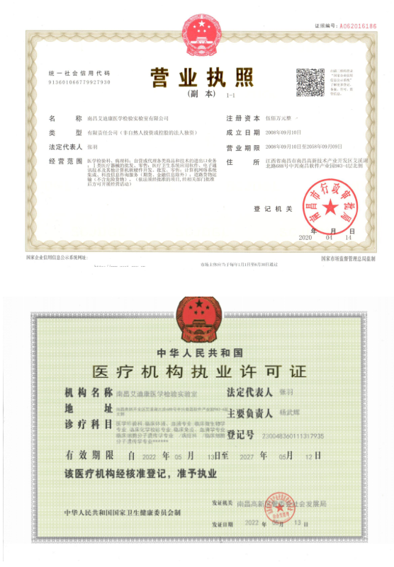 南昌艾迪康医学检验实验室有限公司(简称:南昌艾迪康)成立于2008年,专注于医学检验、病理诊断等多个现代检验平台的专业第三方医学检验机构。其总部设立在杭州,艾迪康已在全国各地设立34 间自营实验室,可提供含约4000 种医疗诊断检测的具竞争性且丰富的目录,涵盖各种专业组,其中包括临床免疫学检验、临床化学检验、临床分子生物学检验及病理学检验等;南昌艾迪康已合作医疗机构 600余家,每日检验能力可达约 20000 余例。南昌艾迪康位于江西省南昌市高新技术产业开发区艾溪湖北路688号中兴南昌软件产业园 9#3-4 层北侧,注册资金 500万元,建筑面积 4265.05 平米,现有员工 200 余人,公司技术和研发实力雄厚,拥有专业检验设备 490 余台套,下设临床、病理、生殖遗传3大中心实验室,并设10多个专业实验组。公司成立以来,始终重视人才培养,采用欧美独立实验室的先进管理体系,引进国际高端质量标准,与全球医学检验同行广泛开展合作交流,所有员工秉承“每一个样本都是一个生命”的价值观,经过专业培训及严格考核合格后持证上岗,为大众提供卓越的医学检验、临床试验、科研服务、健康管理及病理会诊服务。南昌艾迪康 2014 年通过ISO15189 认可,并连年在室间质评中荣获优秀成绩,公司技术和研发实力雄厚,是高新技术企业、南昌市工程技术中心。南昌艾迪康本着“成为每个人身边的医学检验专家”使命,随时为客户解决检验难题。